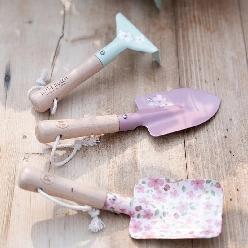 De set bestaat uit een stevige schep, een hark en een schoffel, allemaal gemaakt van hoogwaardige en kindvriendelijke materialen. Het ergonomische ontwerp zorgt ervoor dat ze comfortabel en veilig in kleine handjes passen, zodat kinderen spelenderwijs hun groene vingers kunnen ontwikkelen.