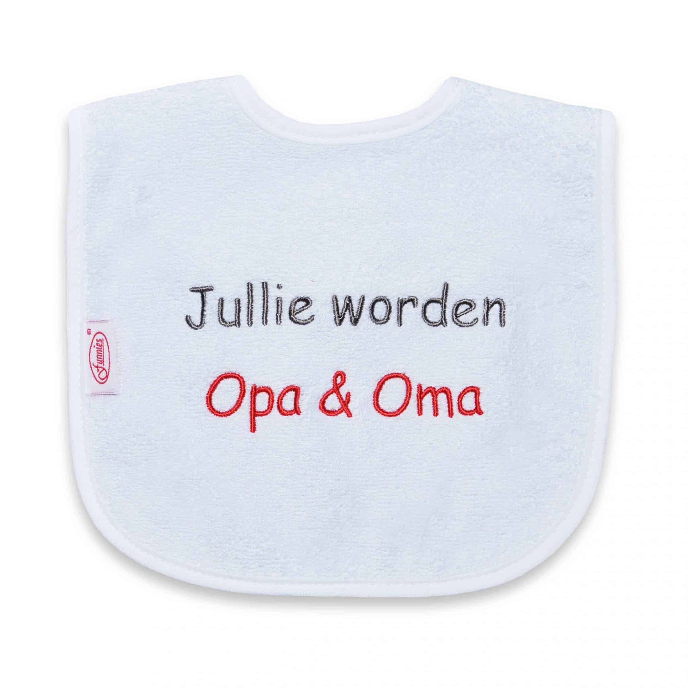 Met deze slab verras je de aanstaande opa en oma. Op de slab staat de tekst ‘Jullie worden opa en oma’ geborduurd.