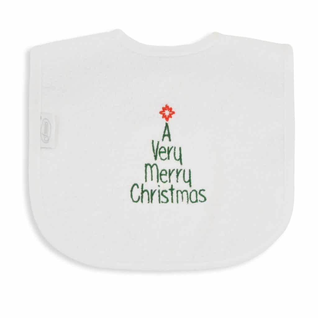 Maak de outfit van je kleine kerstengel compleet met dit lieve geborduurde slabbetje. Op het slabbetje staat de tekst 'A very merry christmas' geborduurd. Deze fijne kerstboodschap wil je iedereen wel wensen toch?