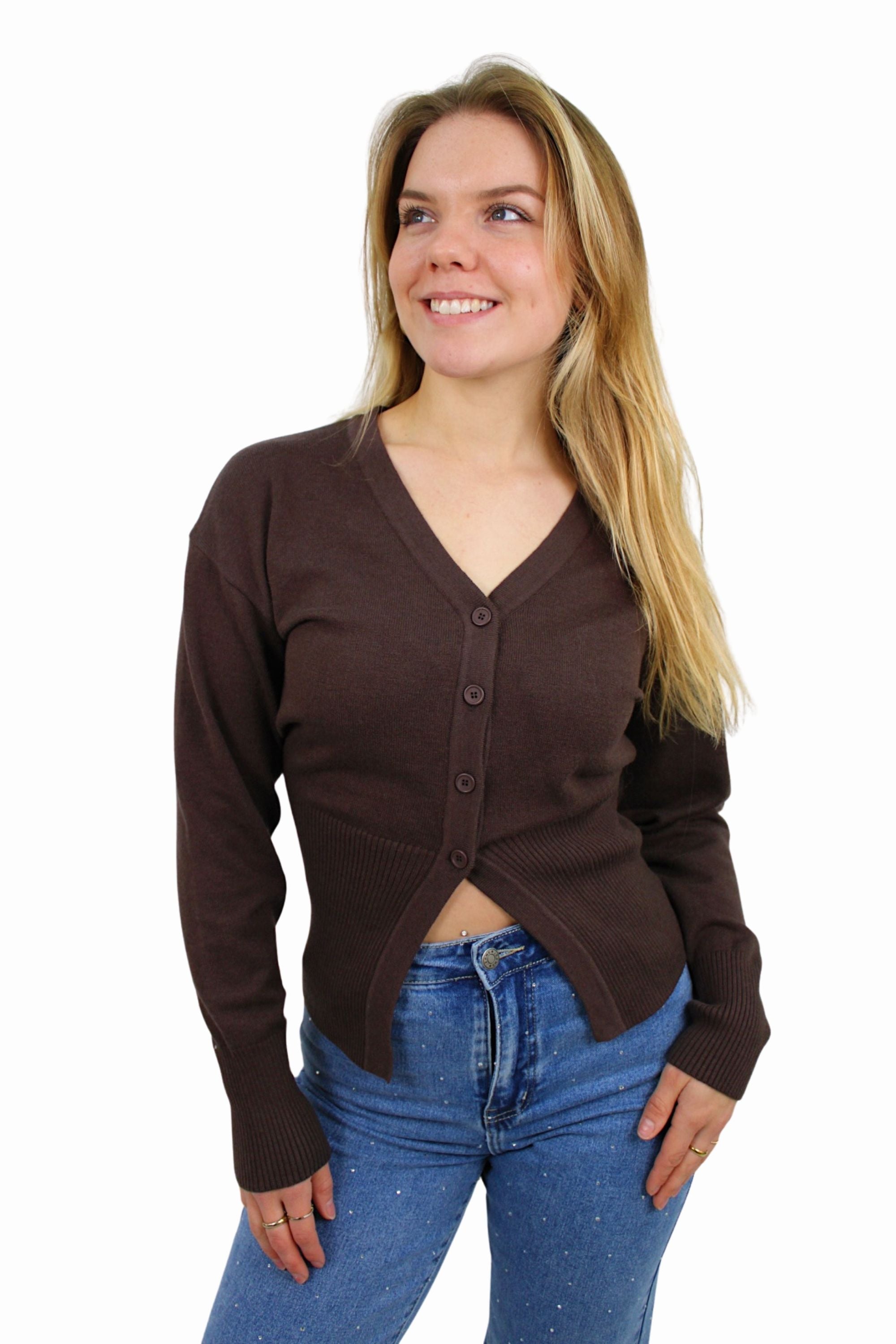 SOFT SPLIT CARDIGAN | BROWN - S/M