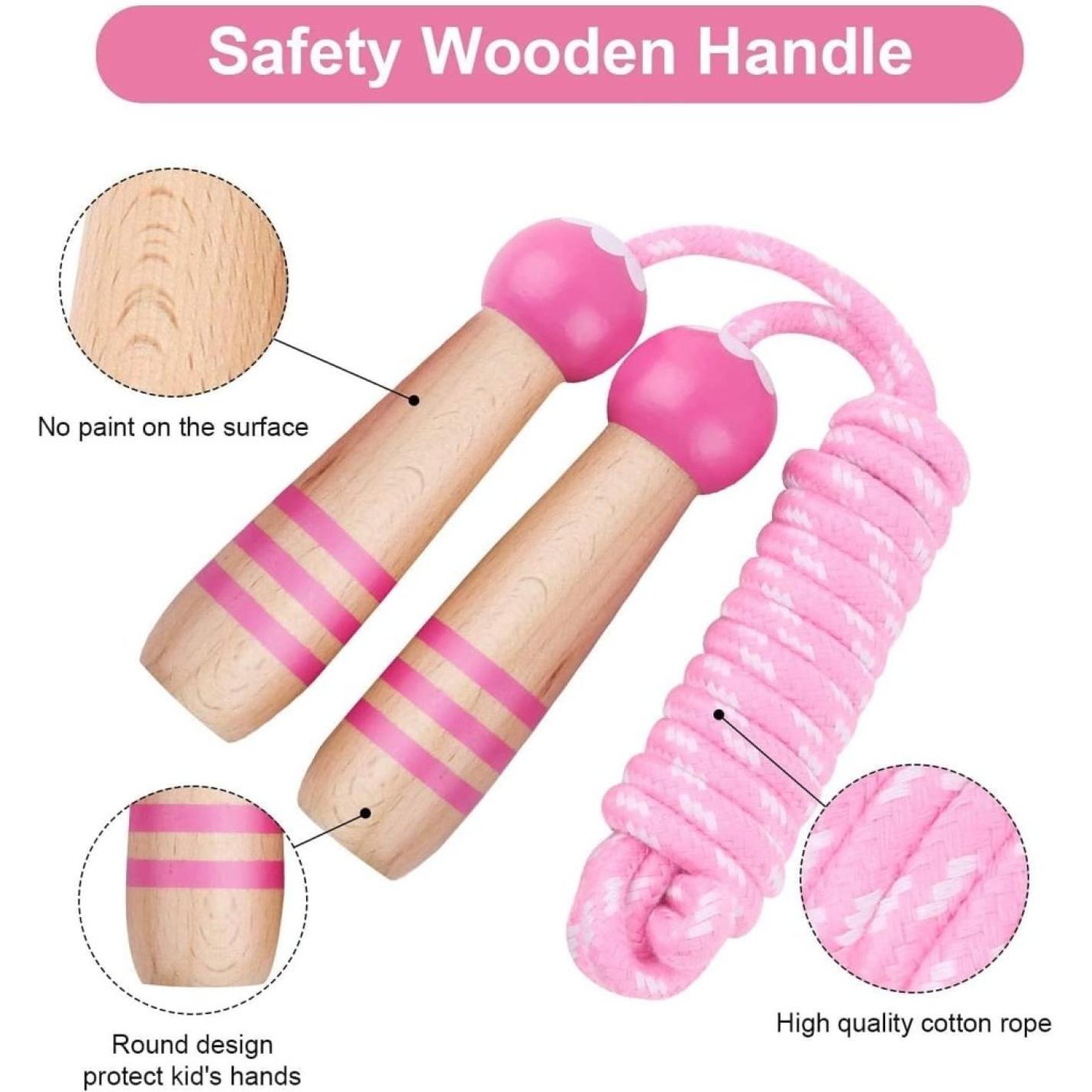 Dit springtouw is een combinatie van functionaliteit en plezier. Het katoenen touw beschadigt de handen niet en is perfect behandeld voor langdurig gebruik. De ergonomische houten grepen zorgen voor maximaal comfort en veiligheid tijdens het springen. Daarnaast is het touw eenvoudig aan te passen, zodat het perfect aansluit bij de behoeften van je kind. Ideaal voor zowel binnen- als buitenspelen, maakt dit springtouw deel uit van een gezonde, actieve levensstijl.