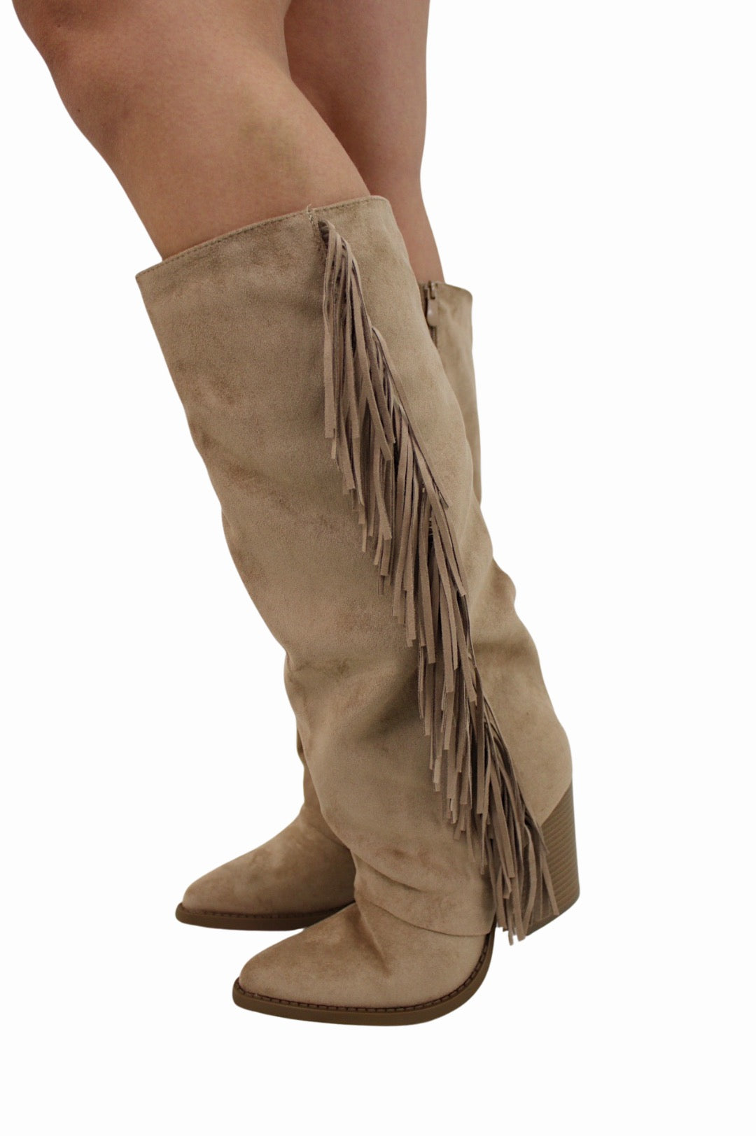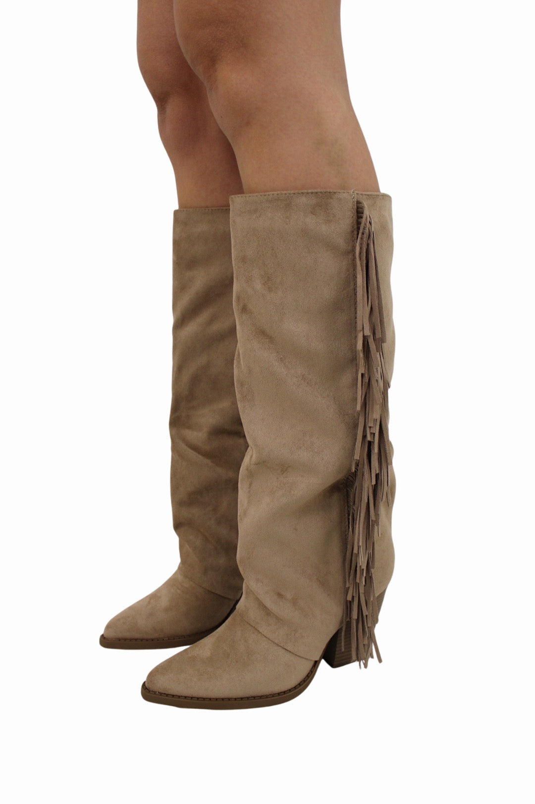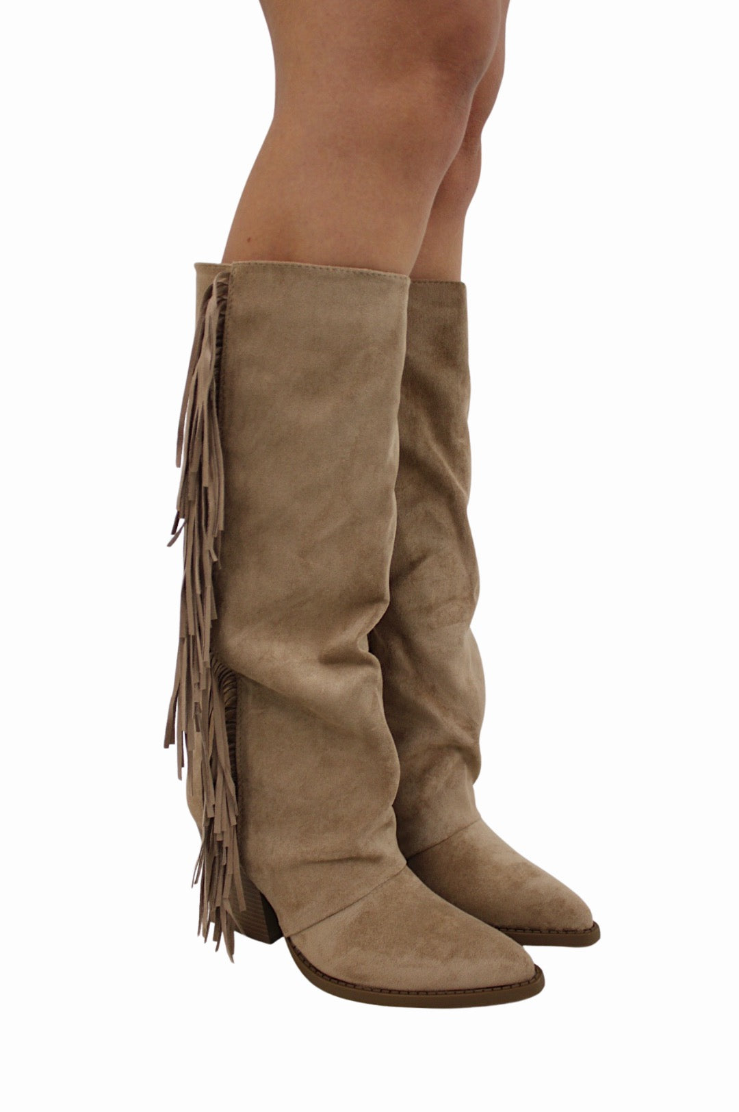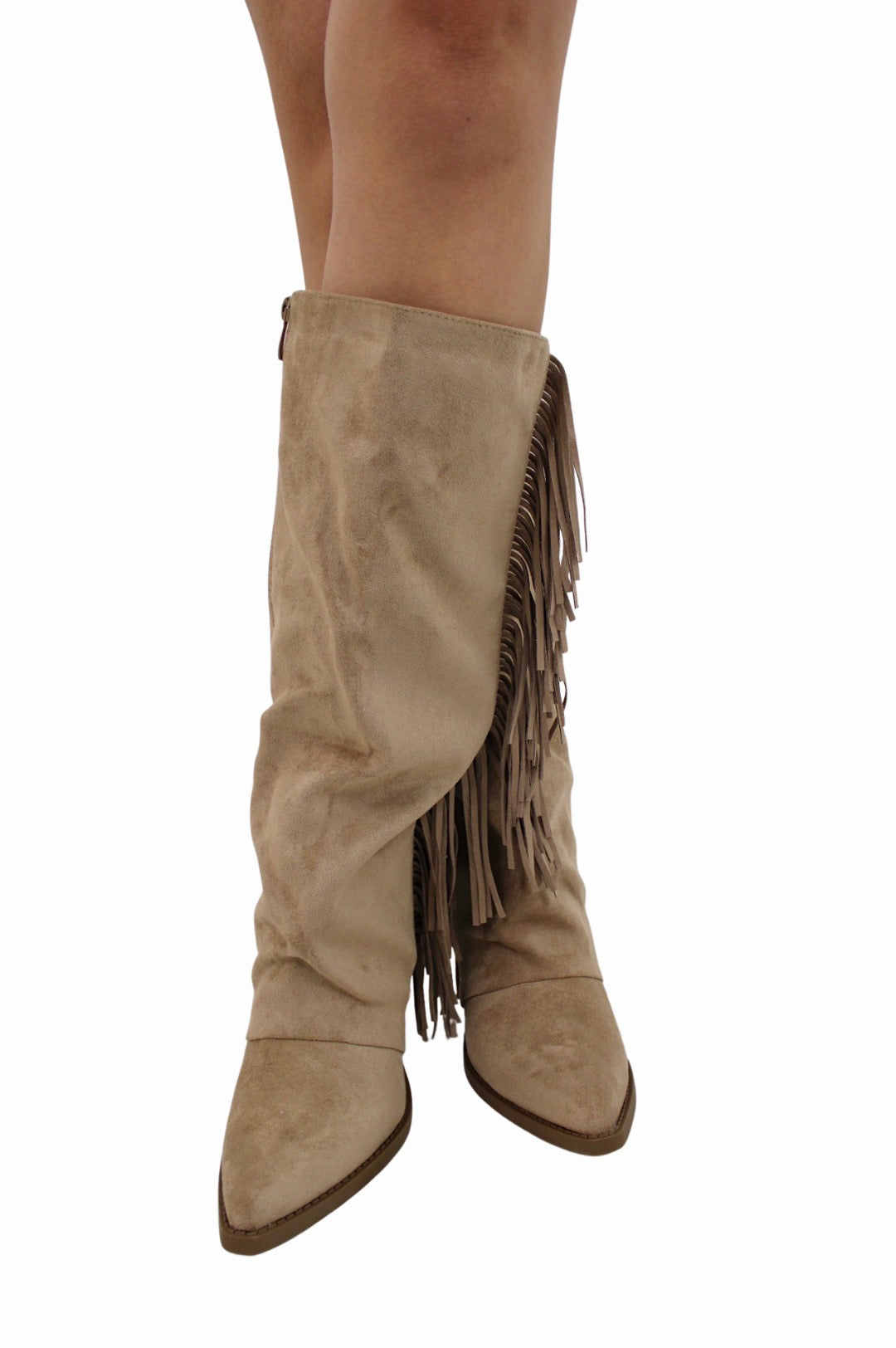 SUEDE FRANJE COWBOYBOOTS | BEIGE - 36
