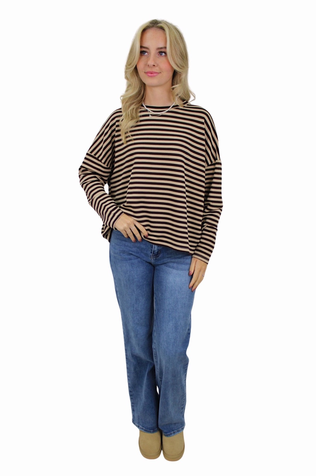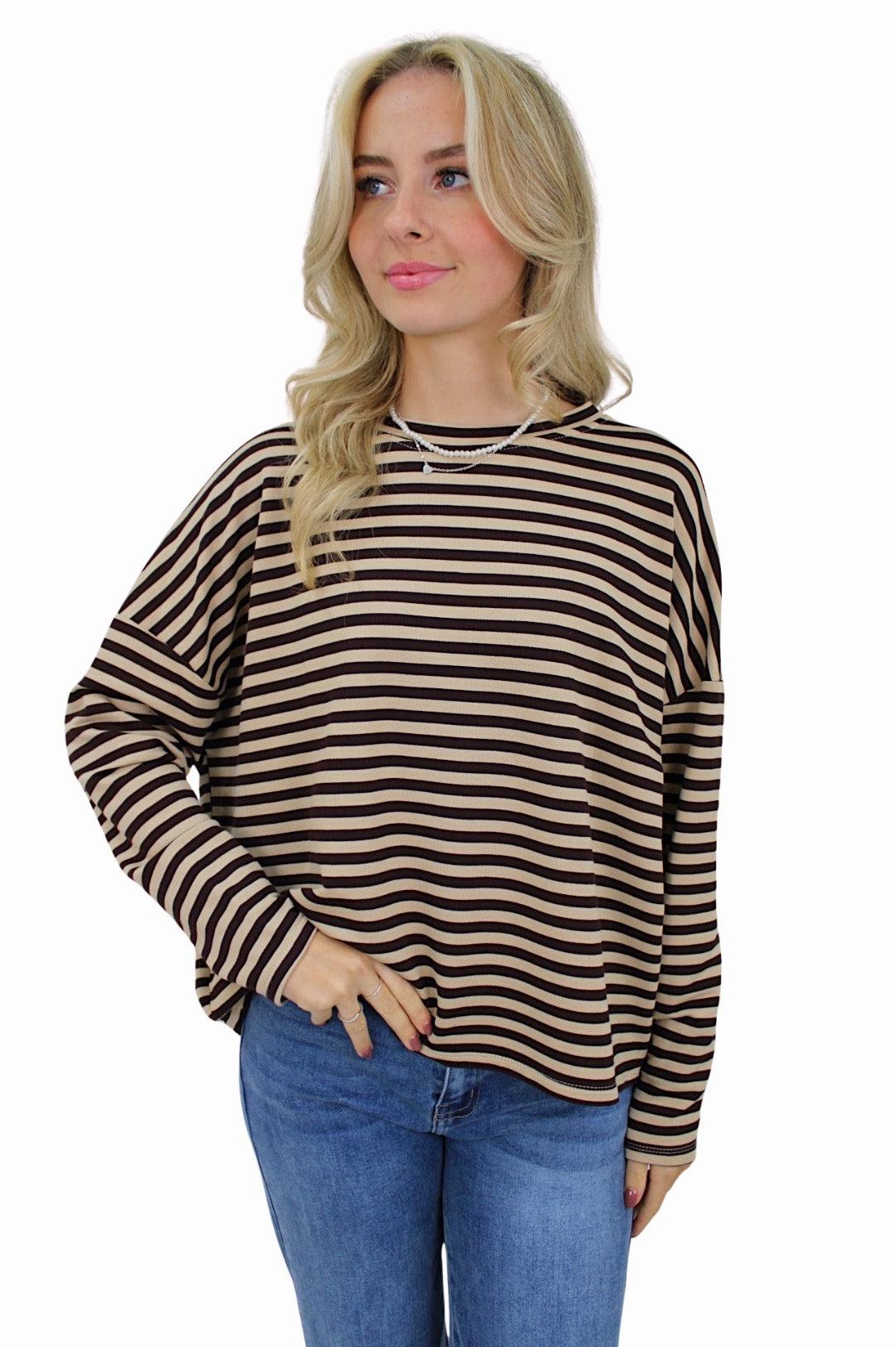 T-SHIRT LONG SLEEVE STRIPED | BEIGE/BROWN