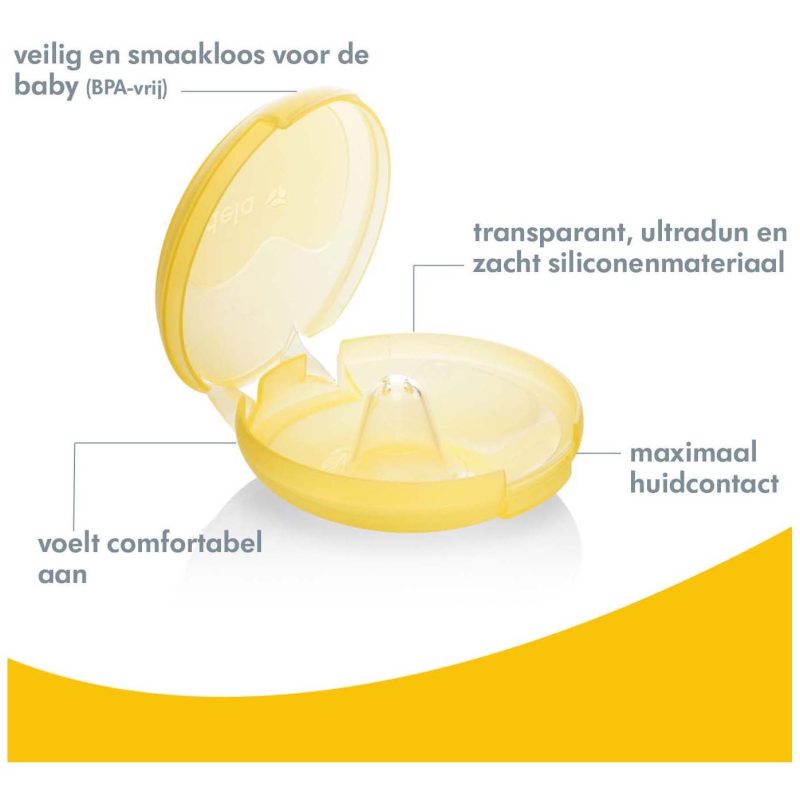 Het Medela tepelhoedje zijn een duurzame, comfortabele en handige manier om gemakkelijker borstvoeding te geven aan je kindje. Heb je problemen met de borstvoeding door vlakke, ingetrokken, pijnlijke tepels of tepelkloven? Dan kan het Medela tepelhoedjes bij deze uitdagingen een oplossing bieden. Ze zorgen ervoor dat je jouw kindje toch borstvoeding kunt geven. De Medela tepelhoedjes beschermen je tepels tijdens het voeden en helpen ook om jouw kindje beter aan te kunnen leggen. De tepelhoedjes zijn voor tijdelijk gebruik bij borstvoeding geven met pijnlijke, kapotte, vlakke of teruggetrokken tepels. Het helpt dus ook bij aanlegproblemen.