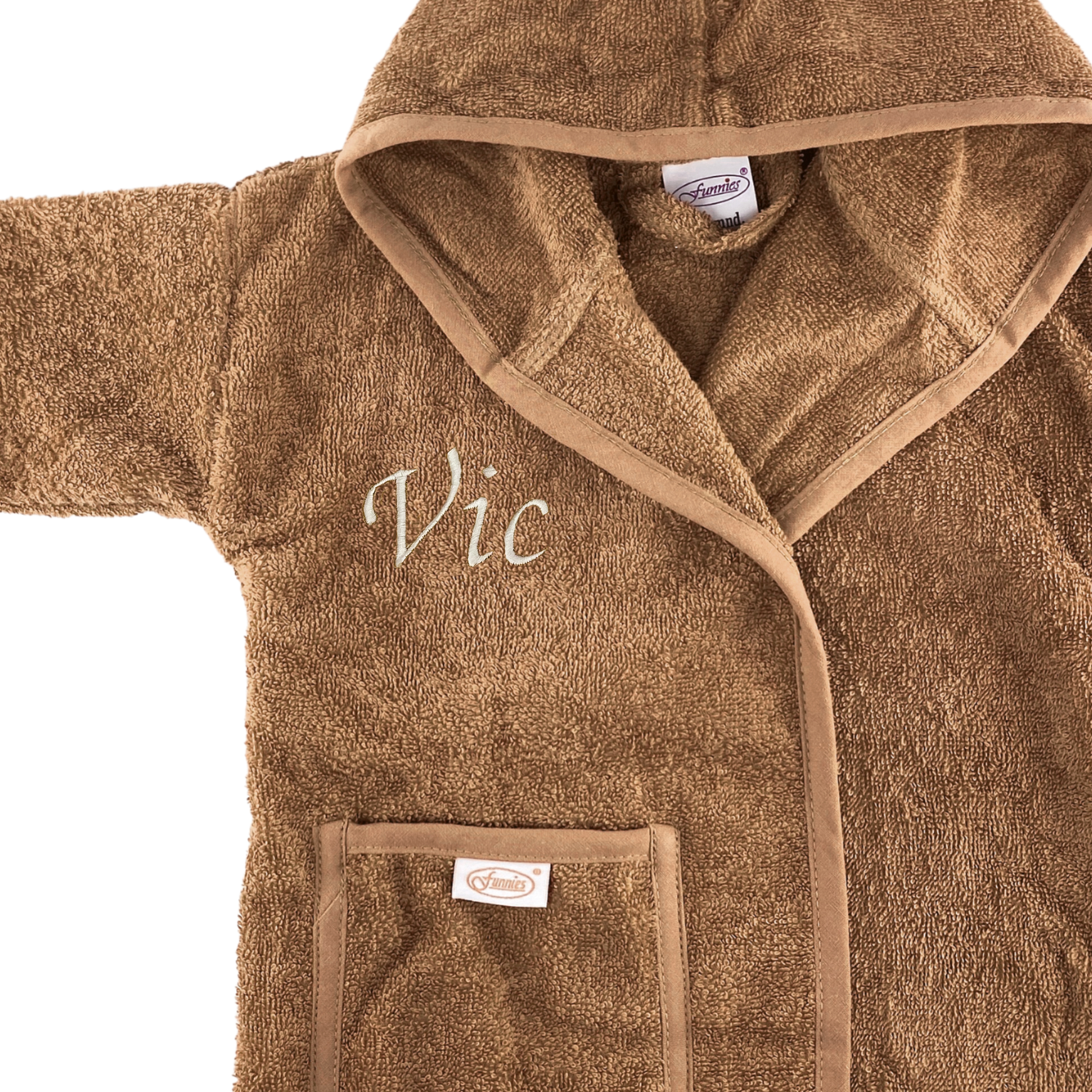 – 2 badjasjes 0-1 jaar met naam geborduurd