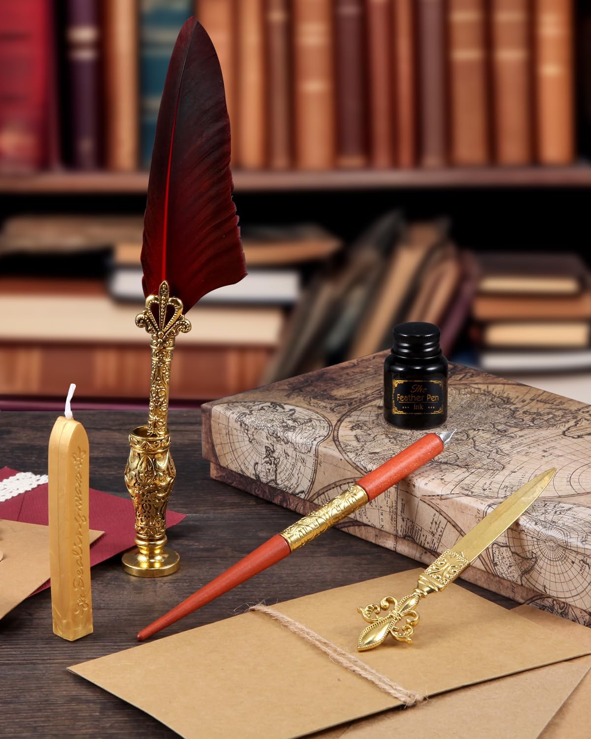 - Hoge kwaliteit: Ervaar de duurzaamheid van de koperen pen en de echte veren, gecombineerd met roestvrijstalen penpunten.