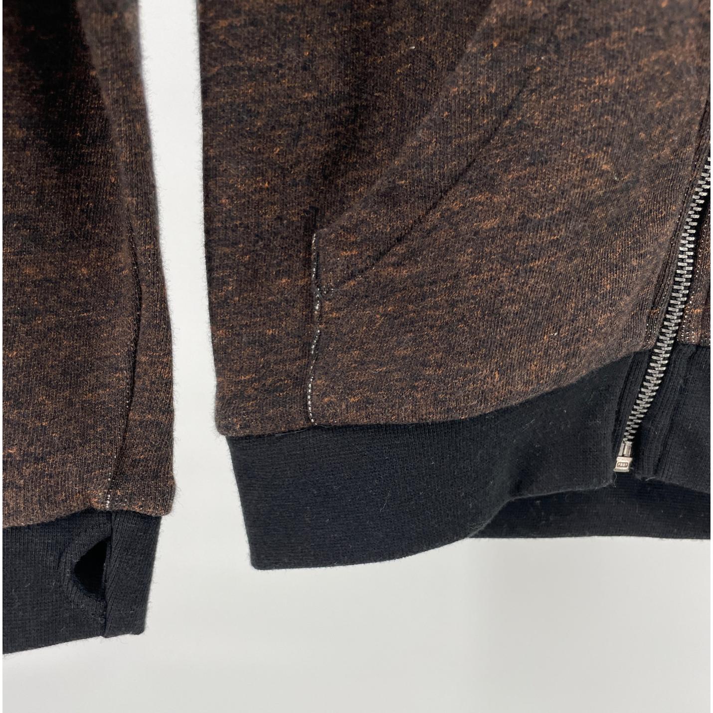 Bruin vest met capuchon van Finger in the Nose in maat 122. Het vest sluit met een rits en heeft voorop twee steekzakken. In de boorden is een duimopening opgenomen, zie foto’s.