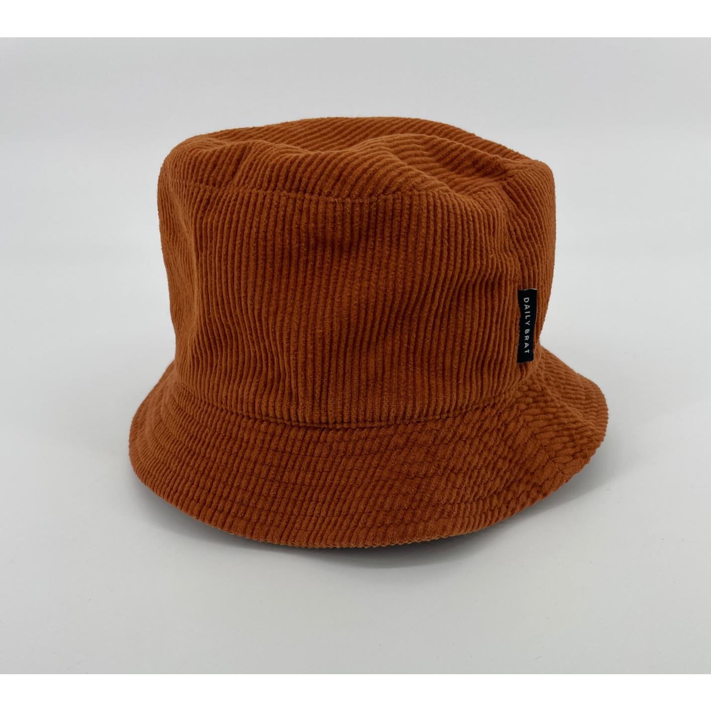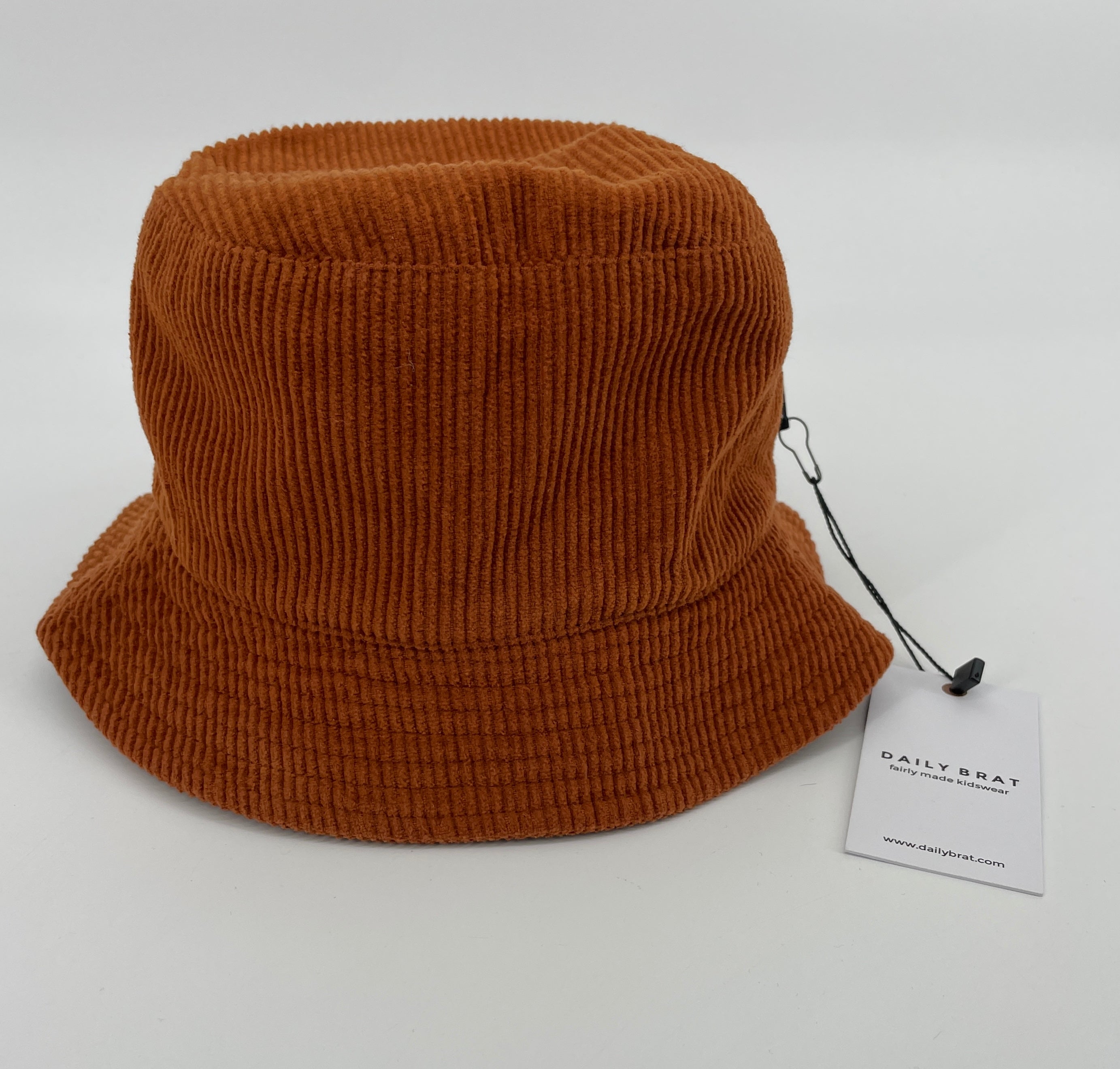 Bruin vissershoedje in ribstof van Daily Brat. Hij is van binnen mooi afgewerkt, zie foto’s. Kleur: Spicy almond.