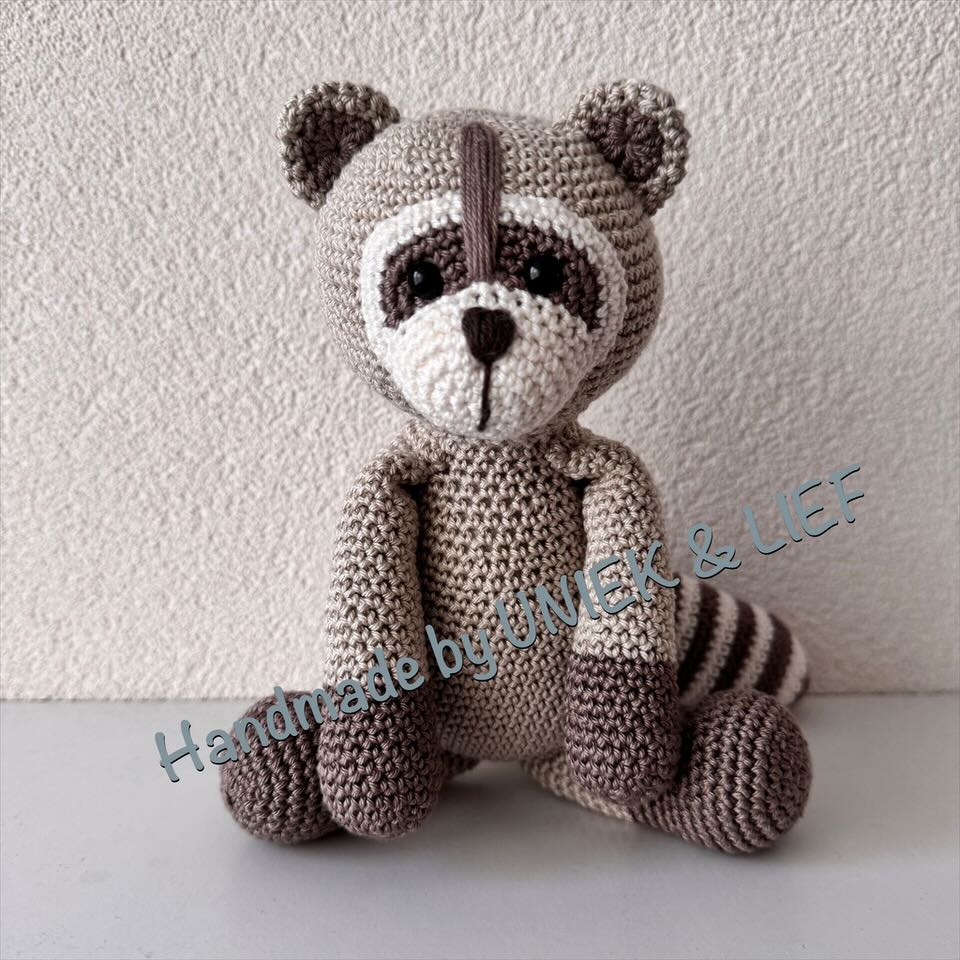 Wat deze wasbeer Rocky linnen knuffel extra speciaal maakt, is de zorgvuldige selectie van materialen. Het haakwerk van de knuffel is gemaakt van 100% katoen volgens de OEKO-TEX Standaard 100, wat betekent dat het vrij is van schadelijke stoffen en veilig is voor de gevoelige huid van baby's en kinderen. De vulling is gemaakt van 100% gerecycled polyester, waardoor deze knuffel niet alleen heerlijk zacht is, maar ook milieuvriendelijk.