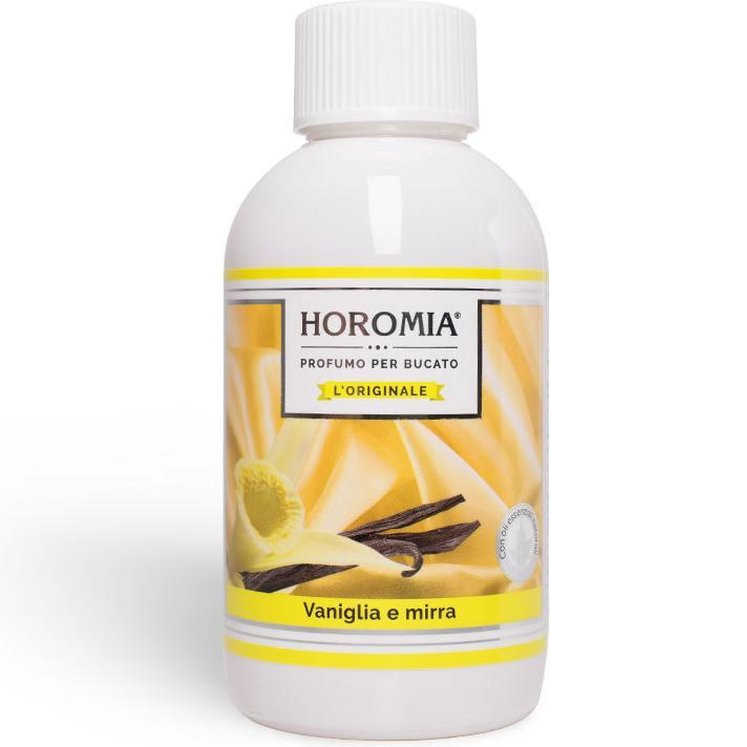 Horomia wasparfum Vaniglia e Mirra (heerlijke geur melange van citrus, mirre, vanille, witte musk en cederhout). Flesinhoud: 500ml.