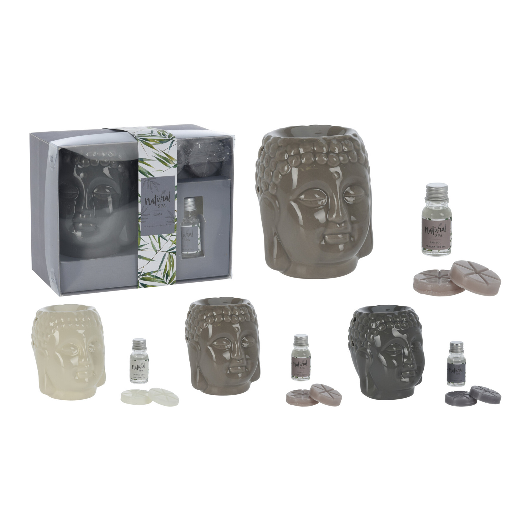 Waxwarmer grijs keramische Buddha cadeauset - geur: Lotus