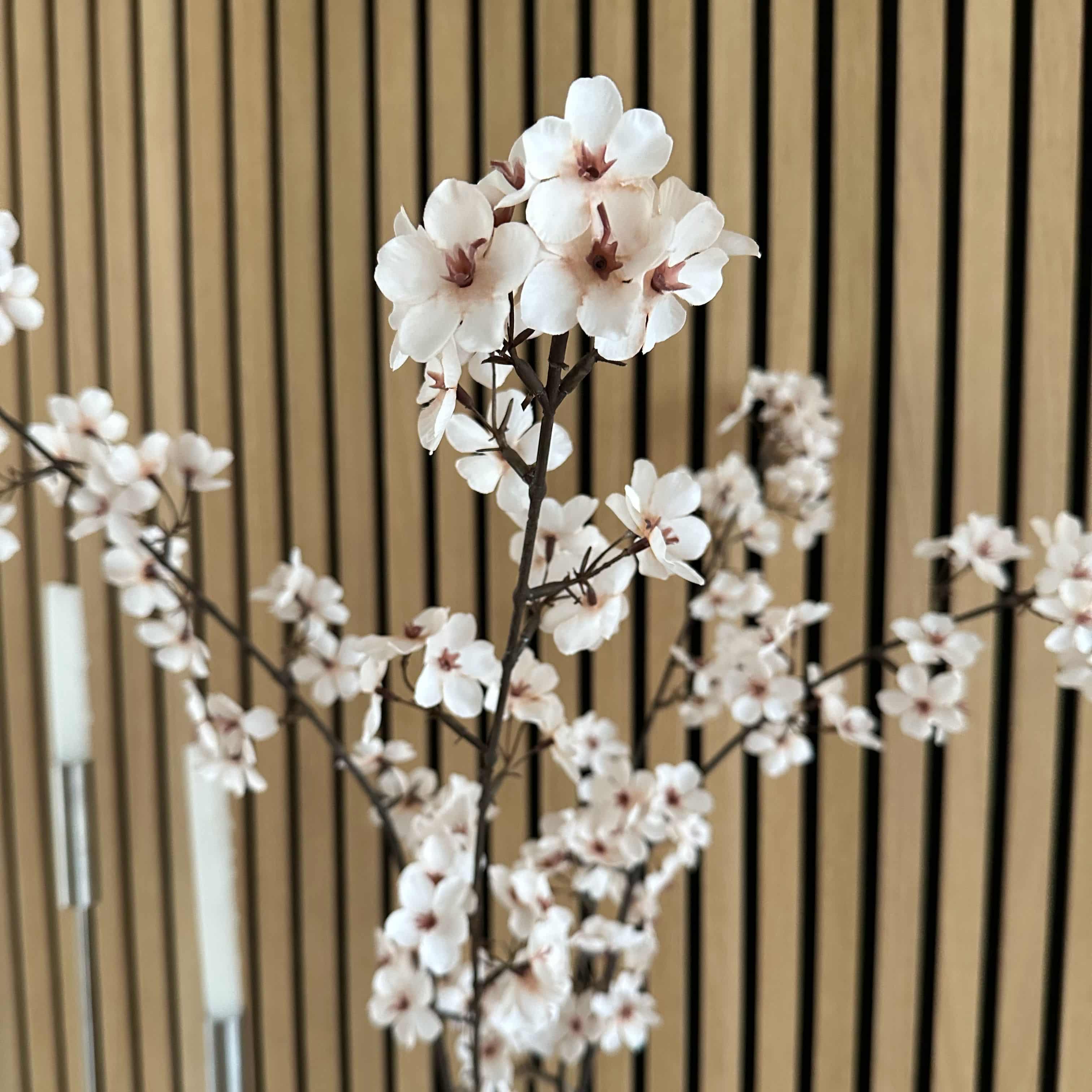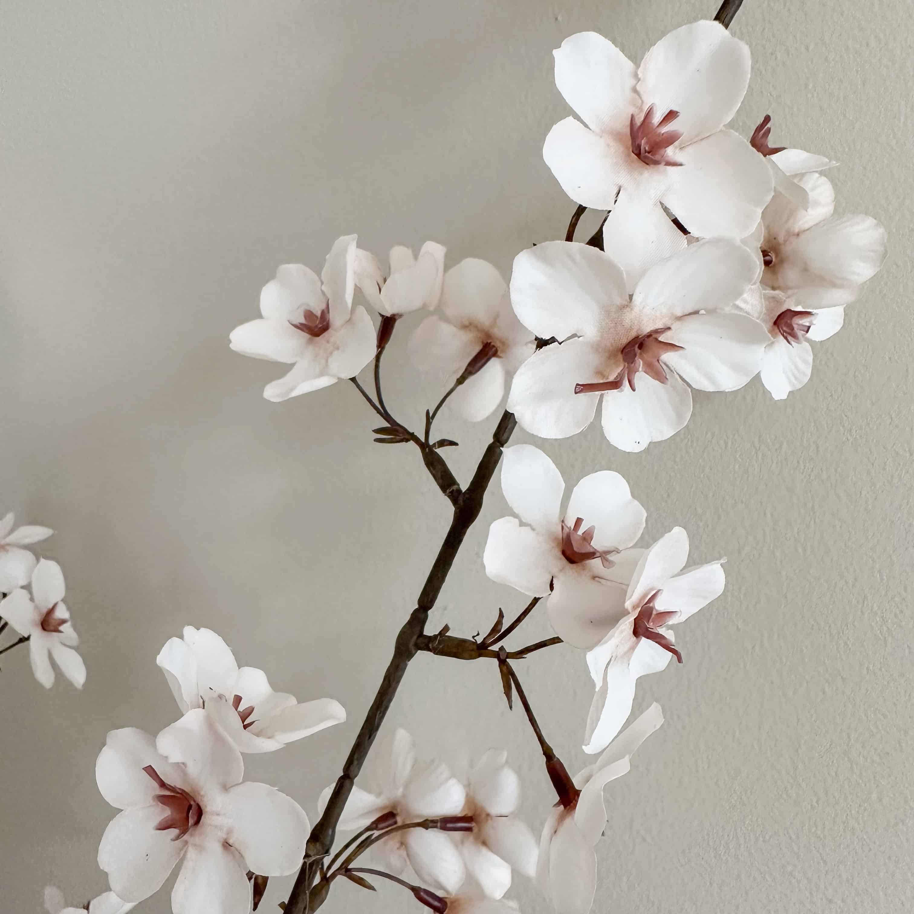Deze prachtige zijde Japanse bloesemtak bruin creme is de perfecte sfeermaker op je tafel of dressoir. Met zijn zachte bloesems geeft deze zijde kersebloesemtak direct karakter aan je interieur. In een vaas, gecombineerd met andere kunstbloemen of juist als stijlvolle blikvanger op zichzelf: hij zorgt moeiteloos voor sfeer.